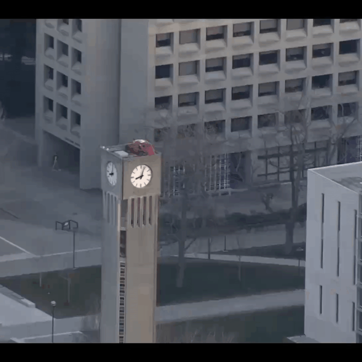 【大胆不敵!街を騒がせた「VWビートル吊り下げ事件」とは?】大学のイタズラの歴史を紐解くと、度肝を抜く事件が続々。特に目を引くのは、VWビートルを大学の象徴的な場所や橋から吊り下げるという、命知らずの悪ふざけだ!