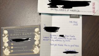 30分圏内に住む友人から送られてきた結婚式のRSVPカードが、何かの間違いでマレーシアに送られ、見ず知らずの親切な人から私たちに送り返されてきました。View Redditどんな話題?世界中を旅した謎のRSVPカード!まるでミステリー小説の...